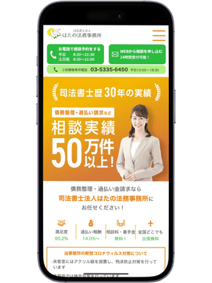 はたの法務事務所は、司法書士歴27年以上の豊富な経験と、20万件を超える債務整理相談実績を誇る司法書士事務所です。